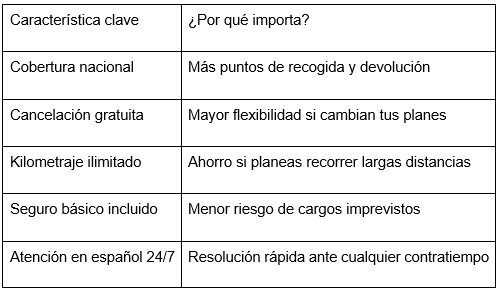- Si vas a recorrer largas distancias, prioriza agencias que ofrezcan kilometraje libre