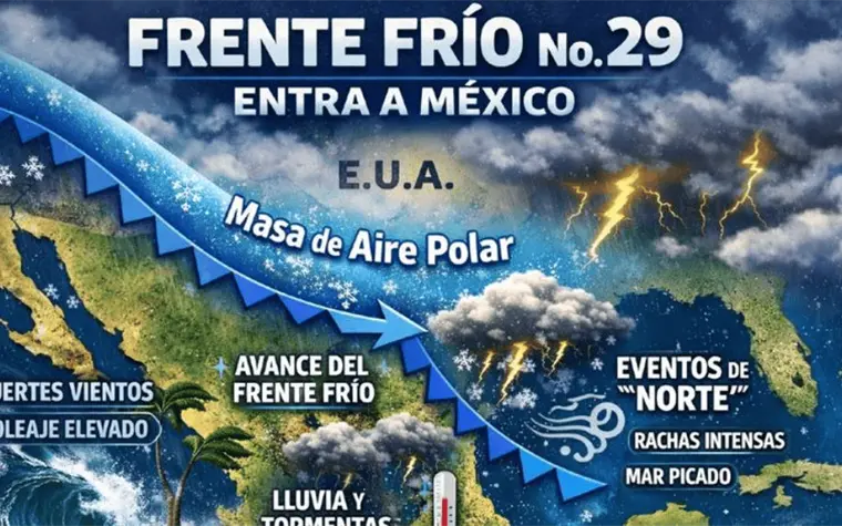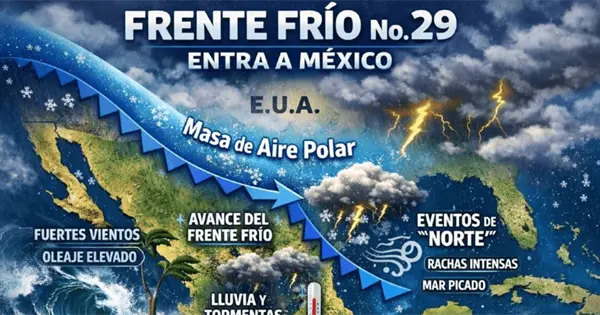 El Servicio Meteorológico Nacional (SMN) informó en su pronóstico que el frente frío número 29 ingresará al territorio mexicano la tarde del viernes 16 de enero.