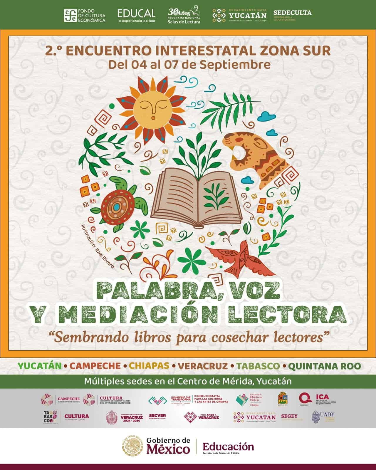 Con la divisa "Sembrando libros para cosechar lectores", arrancará en Yucatán el Segundo Encuentro Interestatal de la Zona Sur: Palabra, voz, y mediación lectora, coorganizado por el Programa Nacional de Salas de Lectura (PNSL), la Secretaría de la Cultura y las Artes del Gobierno de Yucatán y el Fondo de Cultura Económica (FCE).