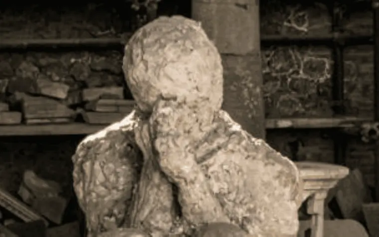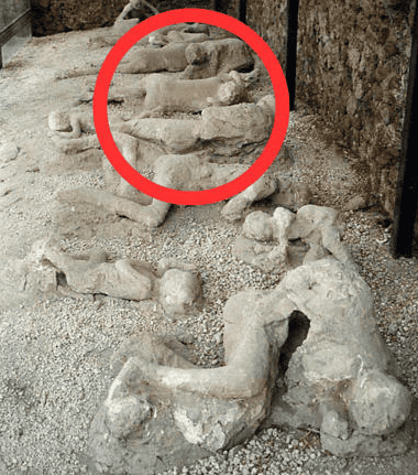 - La erupción del Vesubio en el año 79 d.C. cubrió Pompeya con cenizas y piedra pómez, congelando la ciudad en sus últimos instantes. Entre los restos quedaron las figuras humanas que, siglos después, arqueólogos del XIX transformaron en moldes de yeso. Durante mucho tiempo, estas siluetas alimentaron narrativas sobre lazos familiares, gestos finales y escenas íntimas.