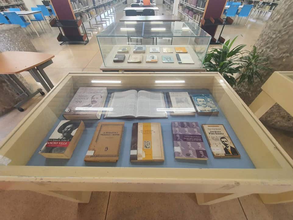 - La biblioteca cuenta con 238,000 volúmenes, su capacidad es de 400 usuarios, cuenta con amplias salas de lectura, auditorio y salas de usos múltiples; colección general, infantil y de consulta en el sistema de estantería abierta; colección hemerográfica y de reserva en estantería cerrada; valiosas colecciones especiales como lo son: Colección Edwin M. Shock, Colección Jorge Gurria, Colección Julio Torri, Colección Joaquín Bates, Colección Leopoldo Duarte, Colección Jesús Taracena, Colección Carlos Sebastián, Colección Celia García, Colección Máximo Evia, Colección Miguel Orrico y la Colección Víctor Manuel Barceló.
