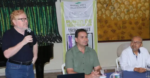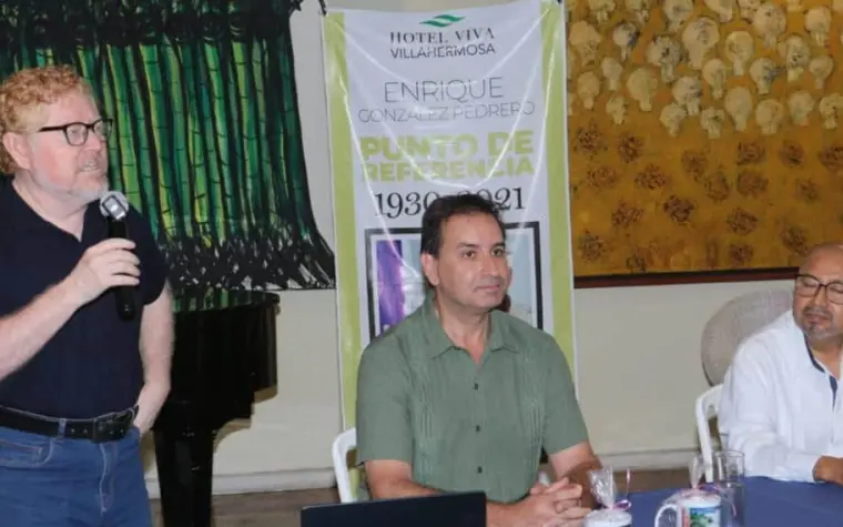 El escritor español David Almazán Tomás presentó el libro Férido Castillo, el Hokusai tabasqueño en el Foro Cultural Viva, organizado por el Sistema Informativo de Tabasco (SIT).