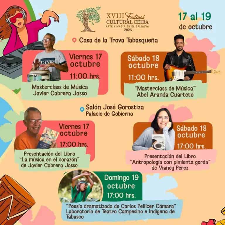 Con una amplia oferta de actividades artísticas y culturales totalmente gratuitas, el Gobierno de Tabasco, a través de la Secretaría de Cultura, anunció la realización del Festival Cultural CEIBA en su edición número XVIII, del 17 al 19 de octubre.
