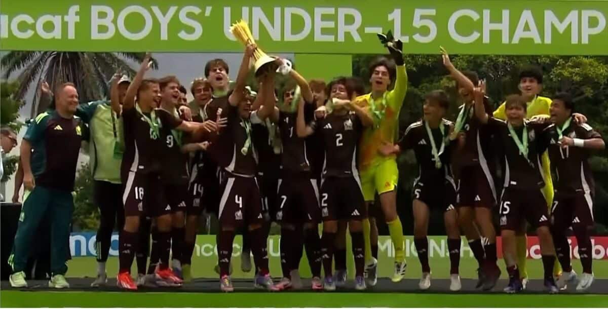 - La Selección Mexicana Sub-15 se coronó campeona del Campeonato de la Concacaf tras vencer de forma categórica 5-0 a Estados Unidos en la final disputada este domingo en Costa Rica, consiguiendo así su segundo título en este certamen.