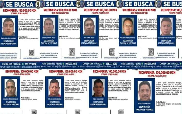 Como parte de las acciones de búsqueda, la FGE difundió fichas oficiales con los datos generales de cada uno de los implicados, su media filiación y el acuerdo emitido por la Fiscalía Especializada.