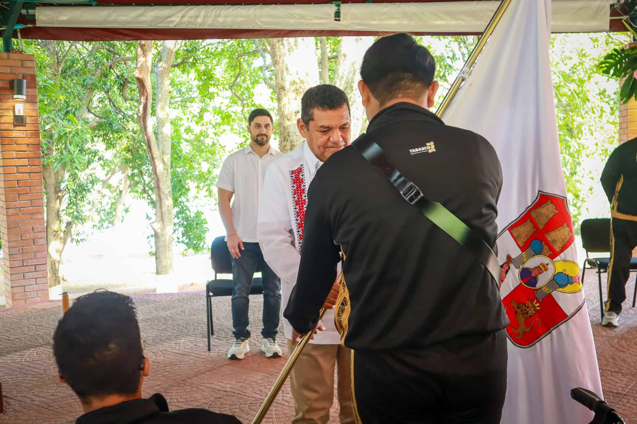 En la entrega de la bandera que porta el escudo de la entidad, efectuada en la Casa de la Laguna, May Rodríguez recalcó que esta insignia simboliza nuestra identidad como tabasqueñas y tabasqueños, pero también es un reconocimiento a los atletas, por su tenacidad, espíritu indomable y su ejemplo de vida.