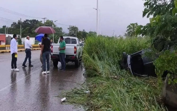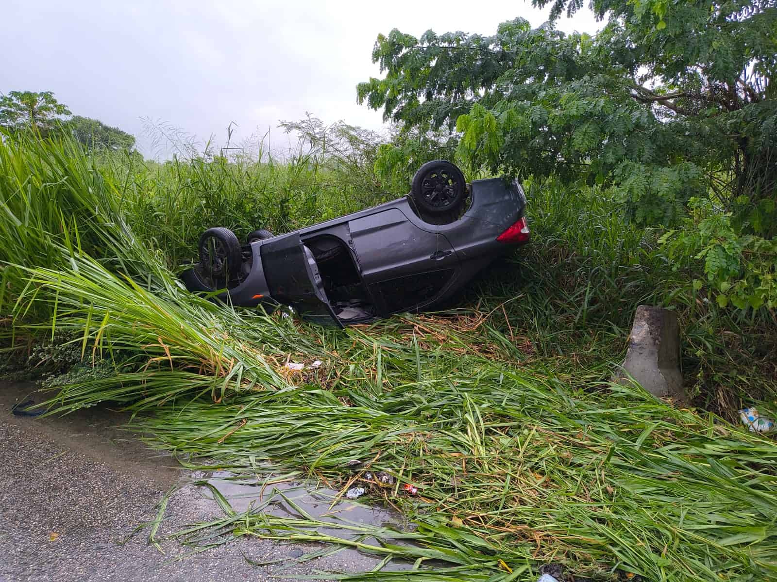- El automóvil volcó, quedando inmovilizado entre el pastizal lateral derecho de la carretera Villahermosa - Nacajuca.