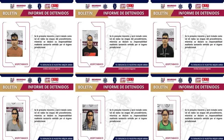 - La Secretaría de Seguridad y Protección Ciudadana (SSPC), en coordinación con la Fuerza Interinstitucional de Reacción Táctica (FIRT) Olmeca, llevó a cabo acciones operativas en distintos puntos del municipio de Centro, como parte de las estrategias de prevención y combate al delito, logrando la detención de seis personas por su probable responsabilidad en delitos contra la Ley General de Salud.