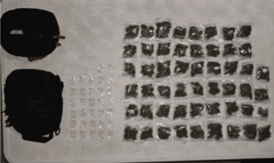 - Finalmente fueron detenidos sobre la Prolongación de la Avenida México del municipio de Centro, Tabasco, José "N", alias "Trino y/o El Flaco", de 34 años y Anayeli "N", alias "La Nayeli" de 35 años de edad. Se les aseguró bolsitas de Ziploc color negro que en su interior contienen hierba seca color verde con características similares a la marihuana, dosis de una sustancia solida color naranja con características similares a la piedra (Reina) y dos mochilas tipo cangurera.