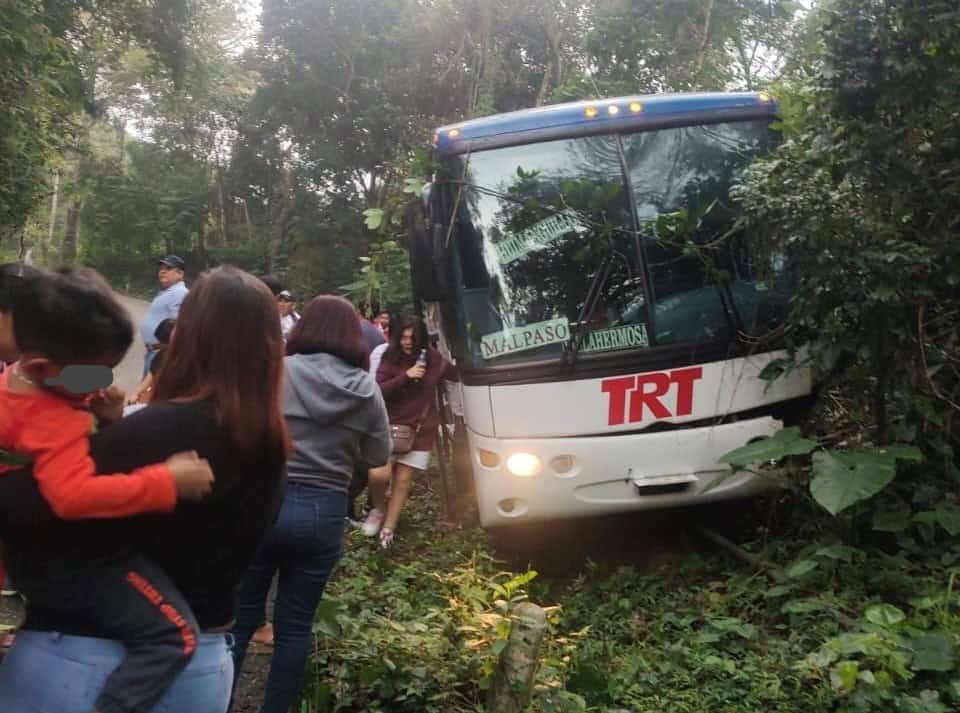 Se sabe que el conductor del Autobús de pasajeros TRT (Transportes Regionales de Tabasco), con número económico 4019, perdió el control, debido a que en el lugar hay gravilla suelta y baches, que lo hicieron volcar.