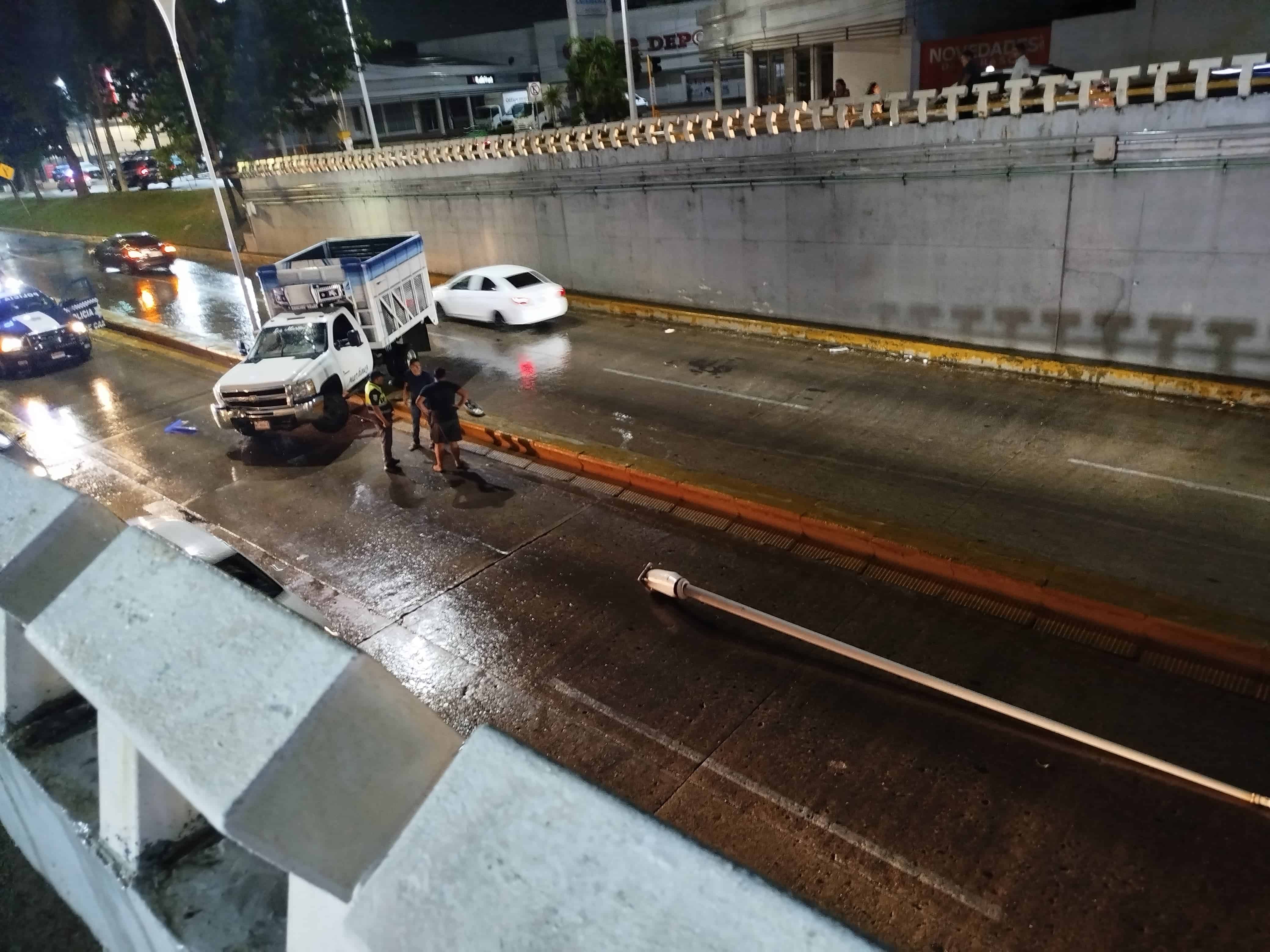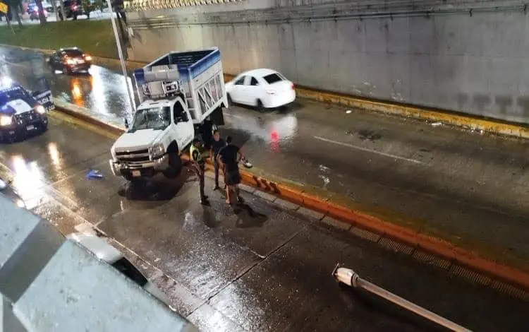 - La media noche del sábado, el conductor de una camioneta de tres toneladas se accidentó sobre el carril central de la avenida Adolfo Ruiz Cortines con dirección al Puente Los Monos; el accidente ocurrió a la altura del túnel del puente de los cruces de Prolongación de 27 Febrero en la colonia Atasta.