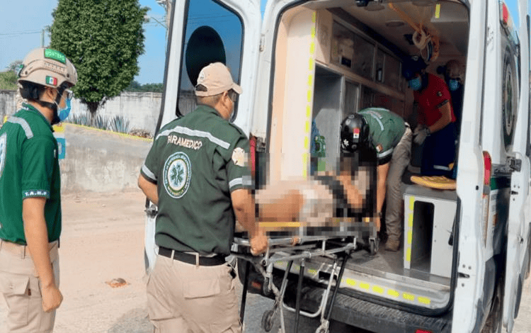 • Por ello lo subieron a una camioneta para trasladarlo a un hospital, pero fueron interceptados por paramédicos que le dieron los primeros auxilios.