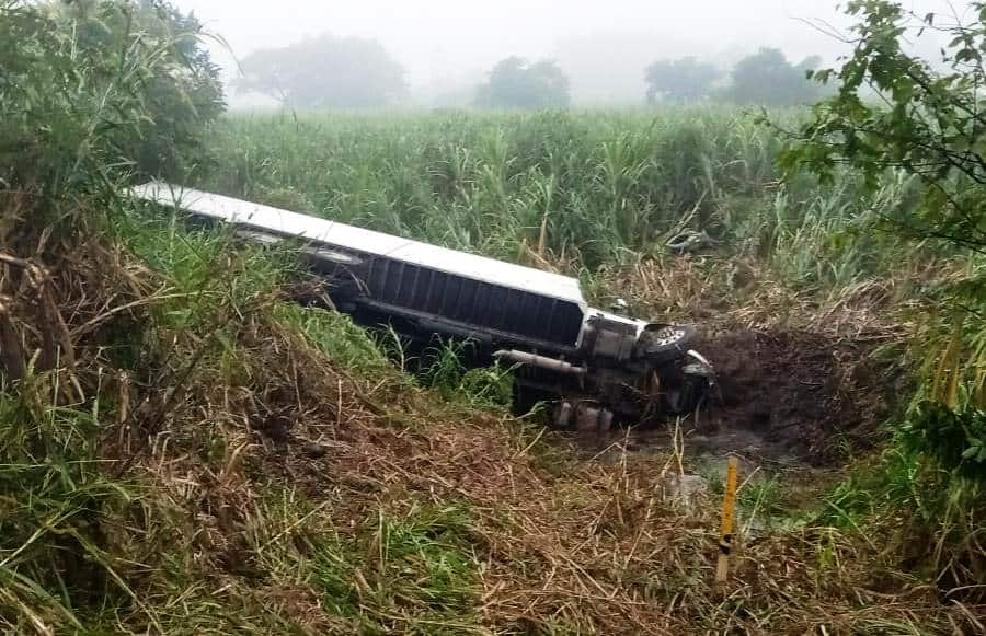 De acuerdo con los primeros reportes, la pesada unidad circulaba con dirección a Villahermosa cuando, debido al aparente cansancio del conductor, este perdió el control del vehículo, saliéndose de la cinta asfáltica hacia su costado derecho.