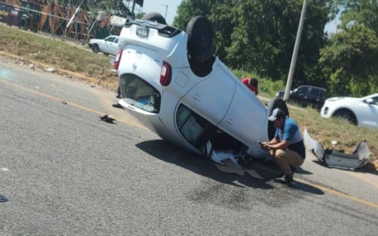 - La volcadura de un vehículo se registró la mañana de ayer sábado en la carretera federal Villahermosa - Cárdenas en el kilómetro 155 a la altura de la ranchería Lázaro Cárdenas primera sección cerca de la entrada al balneario El Gordo y San Pancho.
