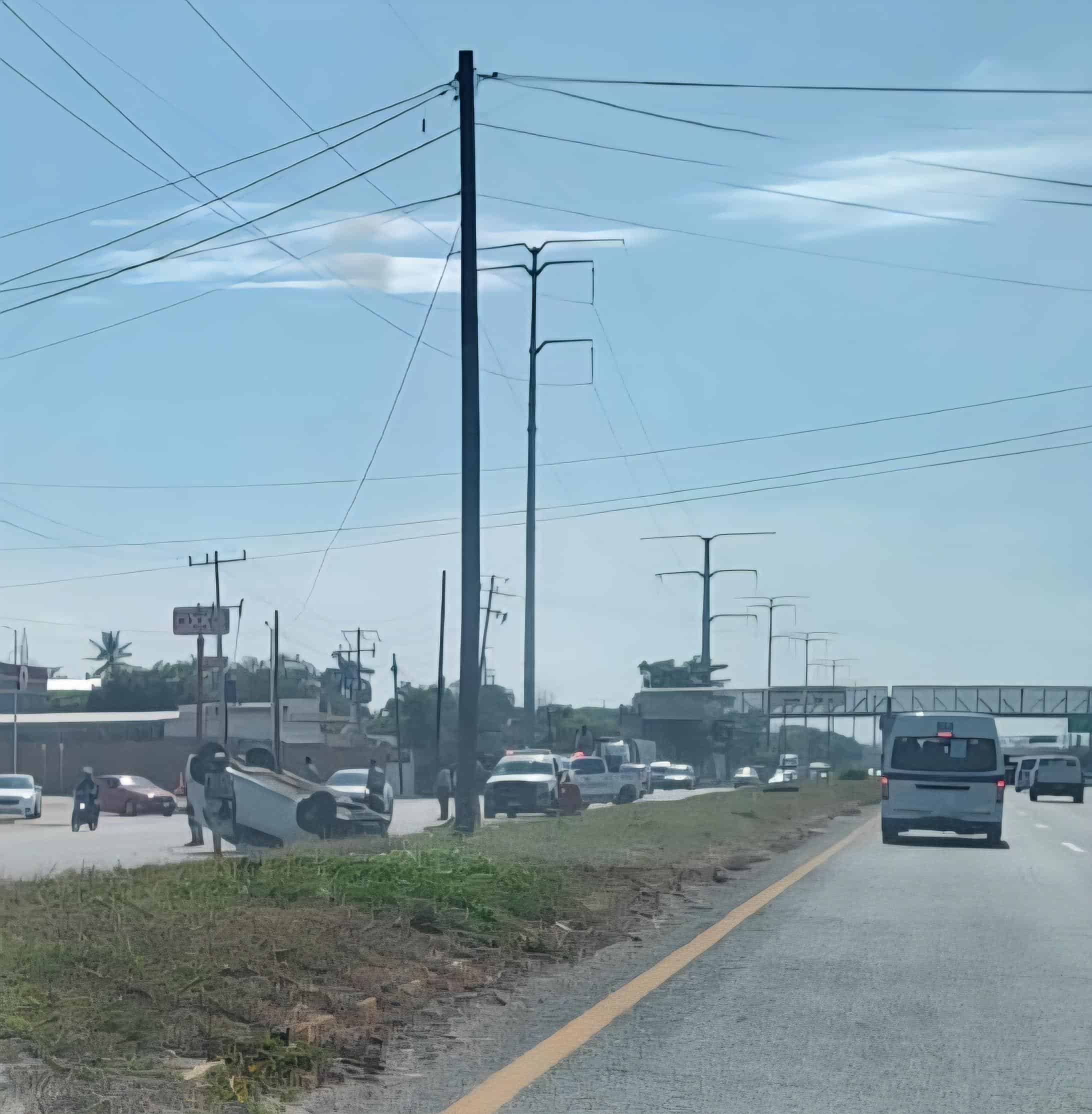 Volcadura de vehículo en carretera federal Villahermosa - Cárdenas