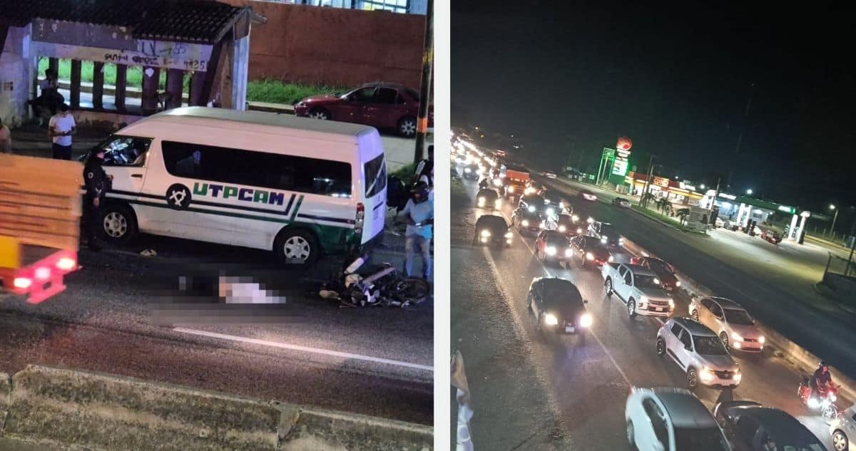 De acuerdo con las primeras versiones, la víctima —presuntamente un repartidor de tacos— se impactó contra una combi del transporte público con número económico 4311 que se había detenido para recoger pasaje. Tras el choque, el joven cayó al carril central justo en el momento en que pasaba un tracto camión que lo arrolló.
