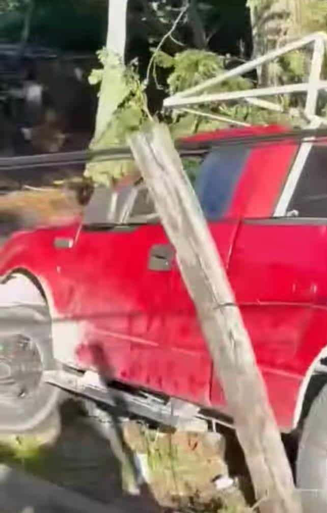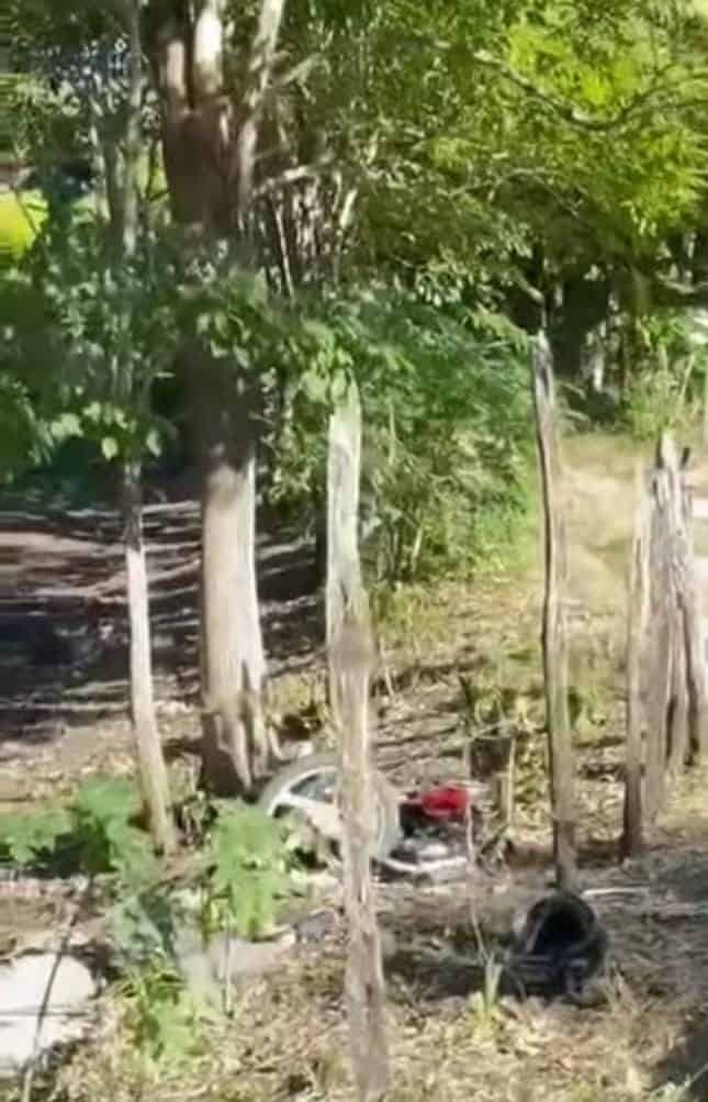 Los que perdieron la vida al instante: uno degollado y el otro cortado a la mitad, viajaban en una moto que fue chocada por una camioneta y los aventó contra una cerca de alambre de púas.