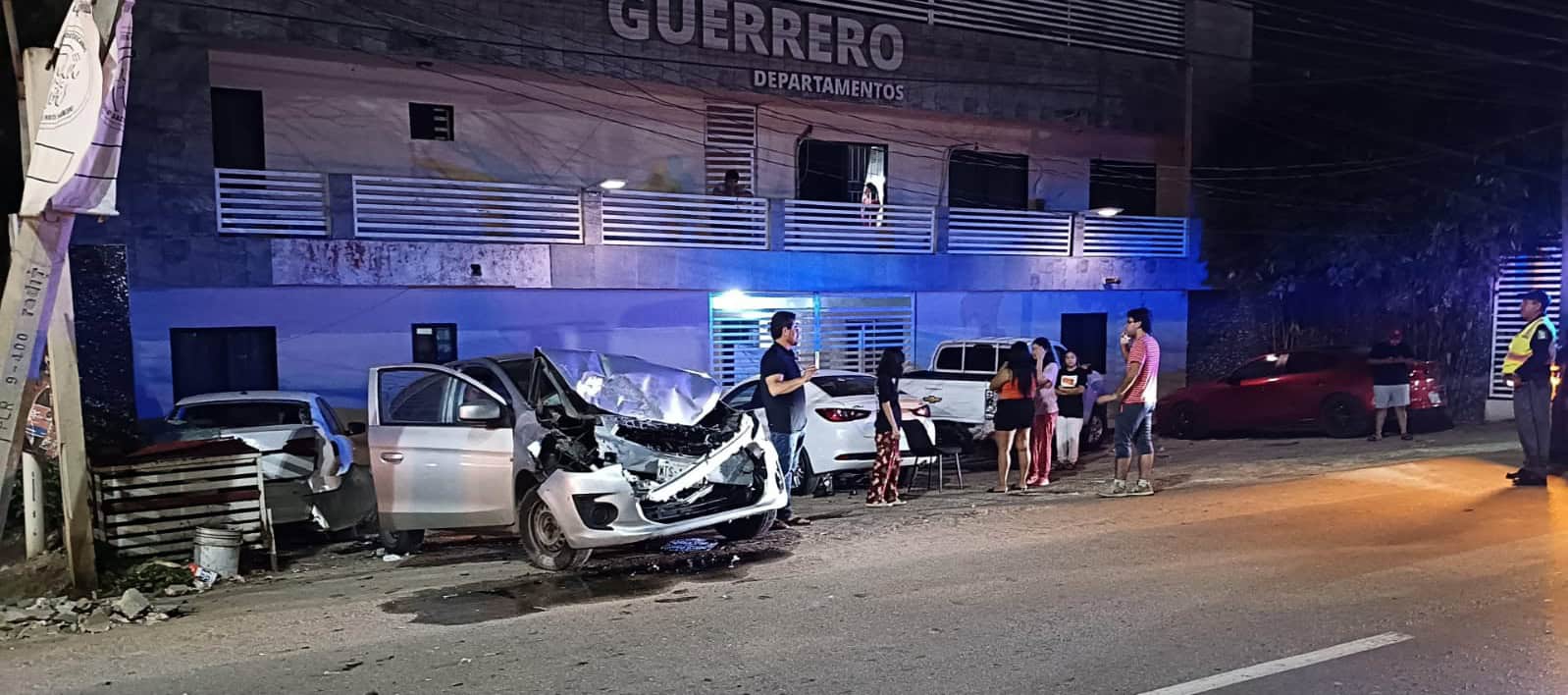 Tras perder el control terminó fuera de la vialidad y colisionó con cuatro unidades estacionadas a las afueras de unos departamentos en la colonia Miguel Hidalgo etapa III.