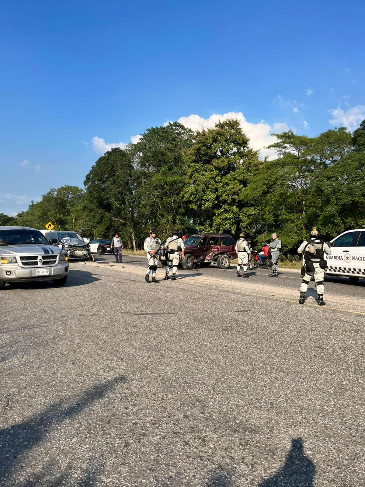 Un aparatoso accidente de vialidad se registró en la carretera Huimanguillo – Cárdenas, donde dos camionetas chocaron, dejando como saldo cuantiosos daños materiales y a sus conductores con lesiones leves.