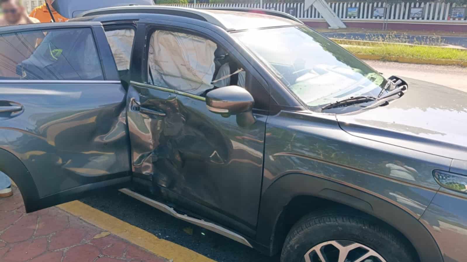 Debido a ello no se percató que un auto conducido por una mujer iba retornando y colisionó por un costado.