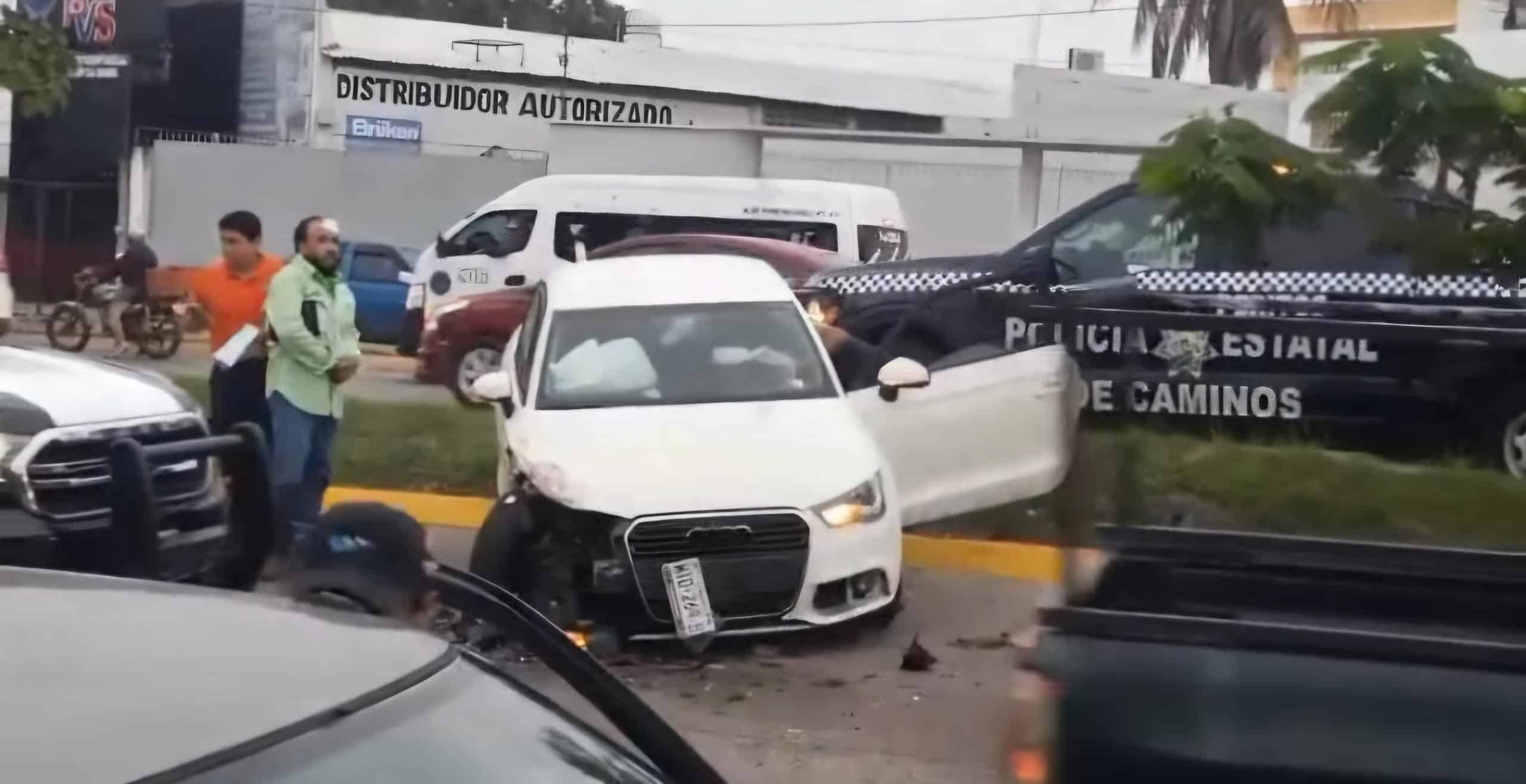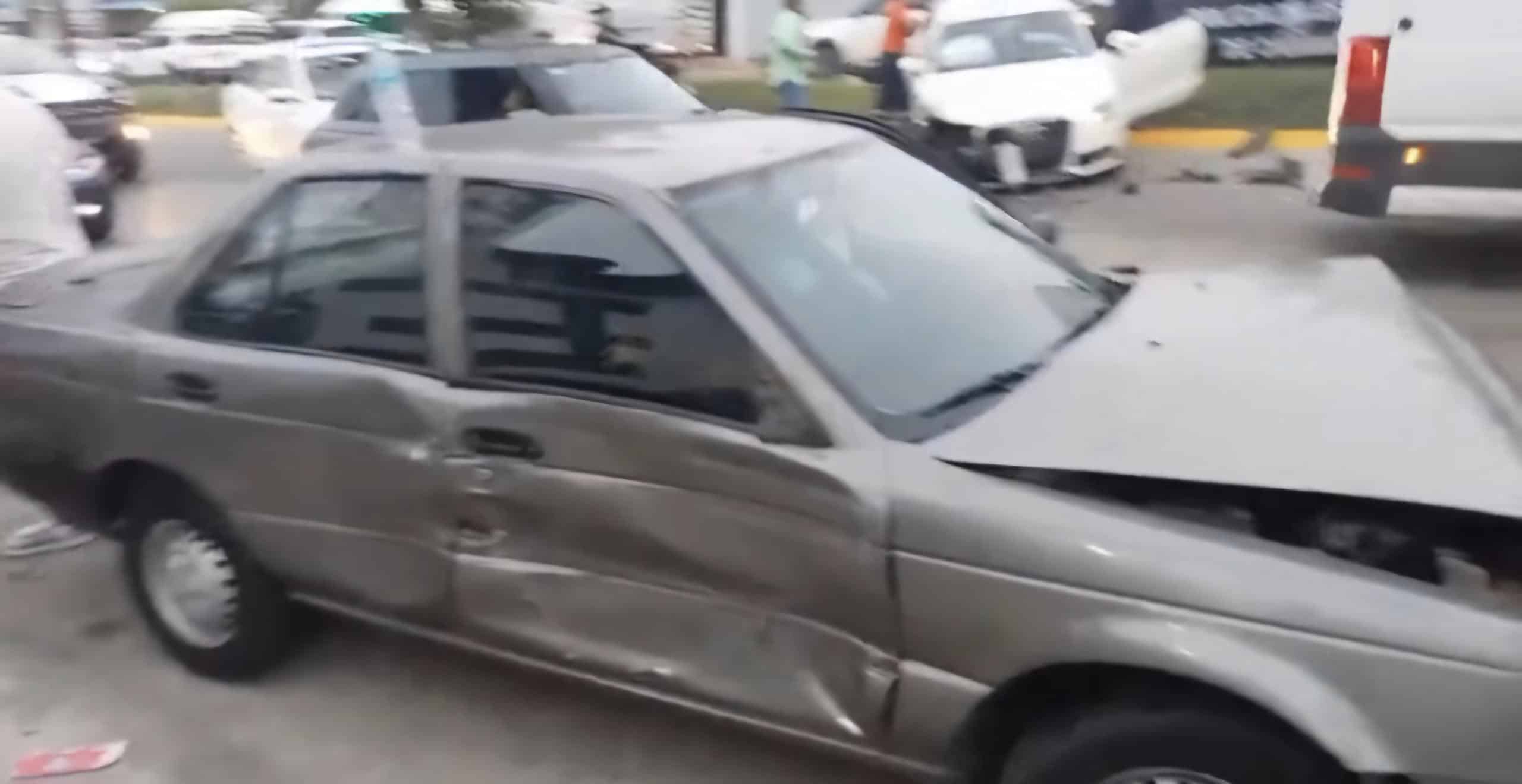 Según los primeros reportes, el conductor de un automóvil color blanco, presuntamente en estado de ebriedad, invadió carril y provocó el fuerte impacto contra tres vehículos particulares y una camioneta tipo estaquita.