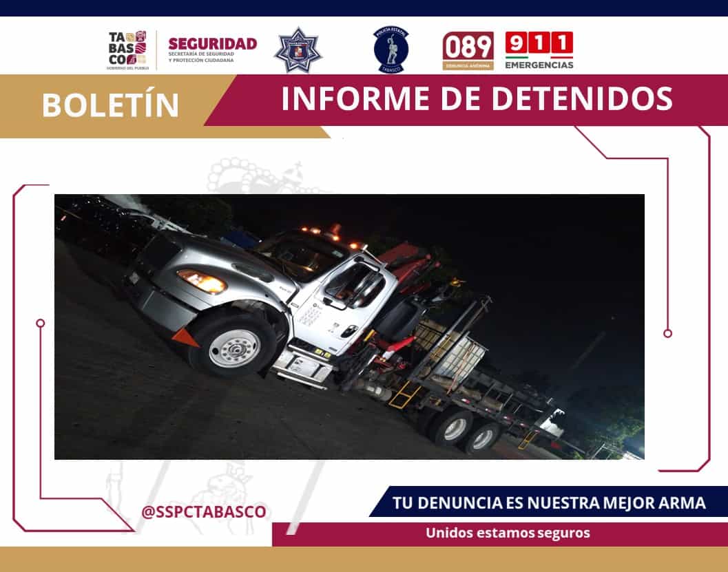 Como resultado de una acción inmediata y en apoyo a la búsqueda derivada del reporte de un robo con violencia de un tractocamión con placas VS2622A, ocurrido sobre la carretera La Isla.