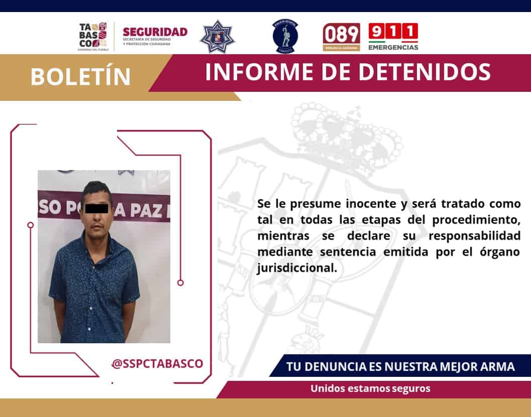 La SSPC y FIRT Olmeca refrenda su compromiso de actuar de manera inmediata y coordinada para combatir los delitos y salvaguardar el patrimonio y la seguridad de la población tabasqueña y reitera Cero Impunidad para quienes atenten contra la tranquilidad de la población.