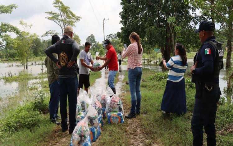 A través del Instituto de Protección Civil del Estado de Tabasco (IPCET) y en coordinación con la Secretaría de la Defensa Nacional (SEDENA) y la Guardia Nacional (GN), se llevó a cabo la entrega de despensas y agua potable en diversas comunidades.