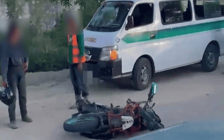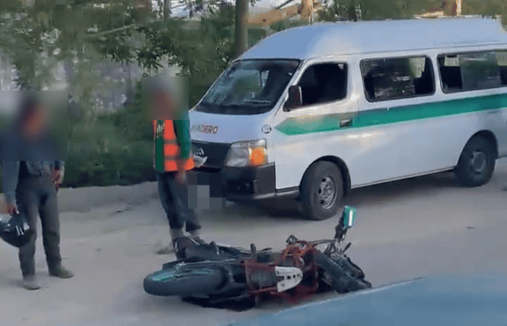 Allí, el tripulante de una motocicleta, narraron testigos oculares, intentó rebasar un vehículo, pero el material pétreo suelto, lo hizo perder el control y el equilibrio, ocasionándole un derrape peligroso.
