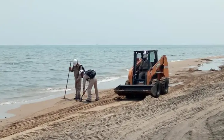 Indicó que la limpieza se realiza manualmente en la orilla de la playa y se estima que las labores se extiendan durante toda la semana.