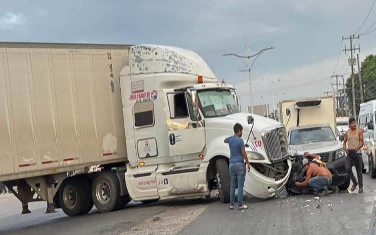 El primero se registró sobre la avenida Universidad a la altura de Plaza las Américas, donde el conductor de un tráiler intentó retornar debajo del puente peatonal con dirección hacia Periférico y terminó colisionando contra una camioneta.