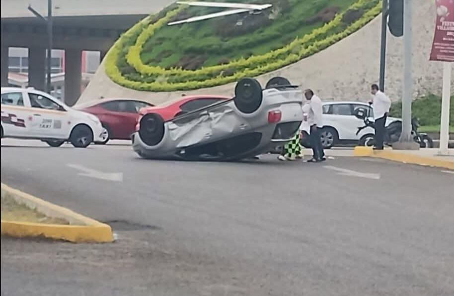 El otro accidente se registró en la glorieta de Guayabal justo a la altura del reloj floral, dos vehículos chocaron en los semáforos ´inservibles´, uno de los autos terminó volcando, ambos conductores resultaron lesionados.
