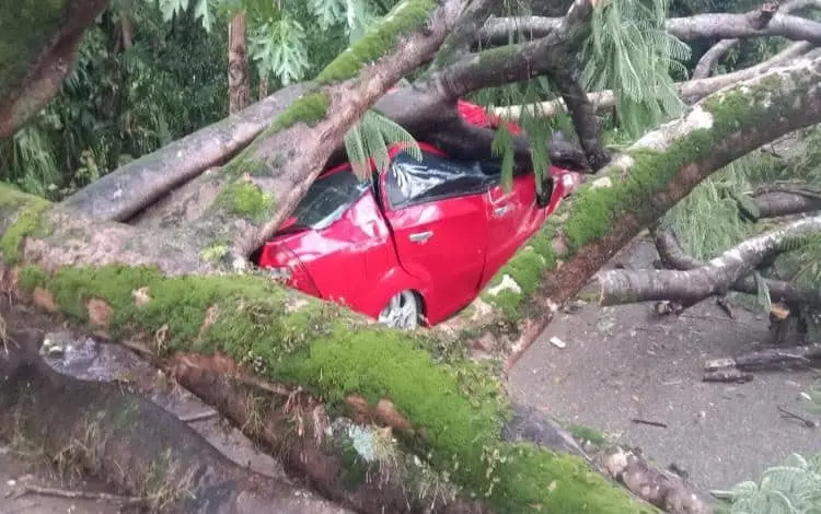 Un árbol caído en Macuspana ocasiona múltiples daños materiales a un vehículo estacionado tras fuertes vientos y lluvias