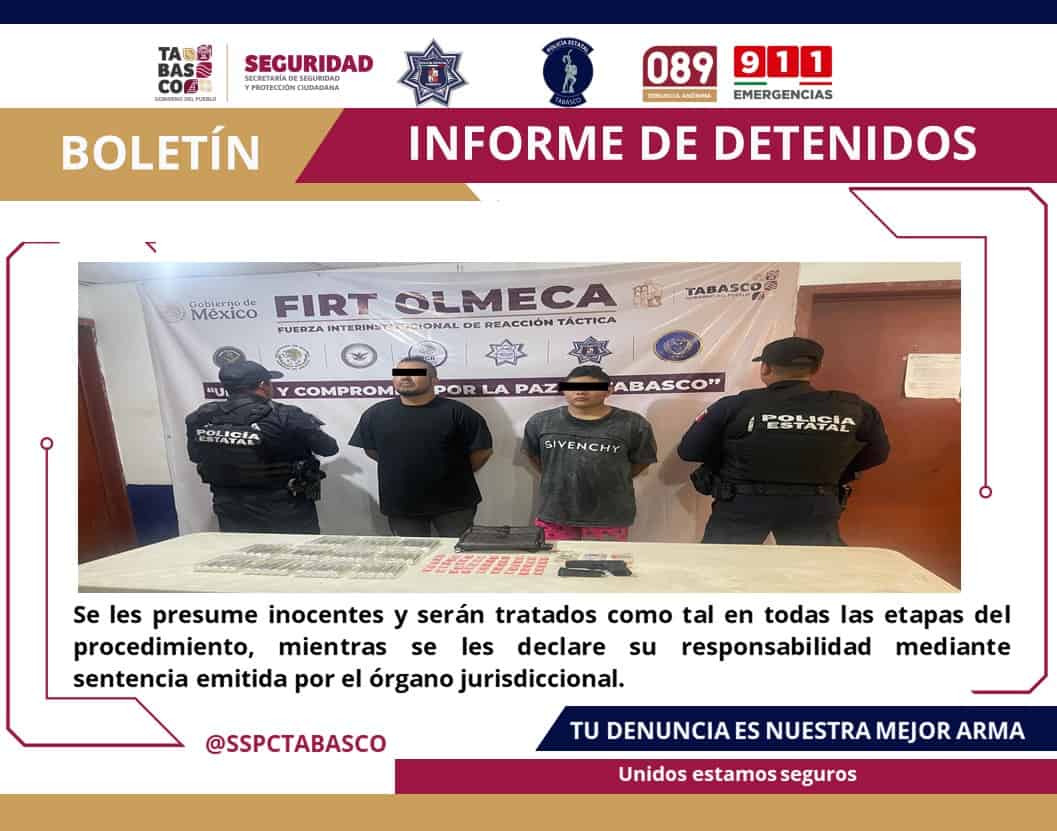 La Secretaría de Seguridad y Protección Ciudadana (SSPC) en coordinación con la Fuerza Interinstitucional de Reacción Táctica (FIRT) Olmeca, detuvieron a dos masculinos, aseguraron un vehículo y un arma de fuego.