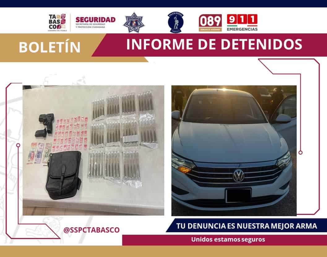 Los hechos ocurrieron en la carretera Cárdenas-Villahermosa, deteniendo a Felipe de Jesús "N" alias el "El chato y o Lento" de Guadalajara Jalisco y a Kevin Orlando "N".