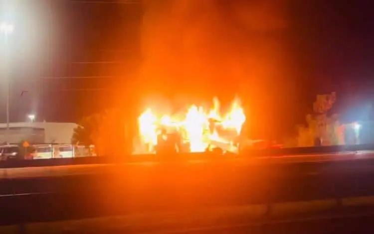Fue durante la madrugada de este lunes, cuando una cachimba de láminas localizada sobre la carretera federal Cárdenas a Villahermosa, cerca del CEDIS de Walmart, comenzó a arder de manera repentina y a los pocos minutos se escucharon gritos de desesperación.