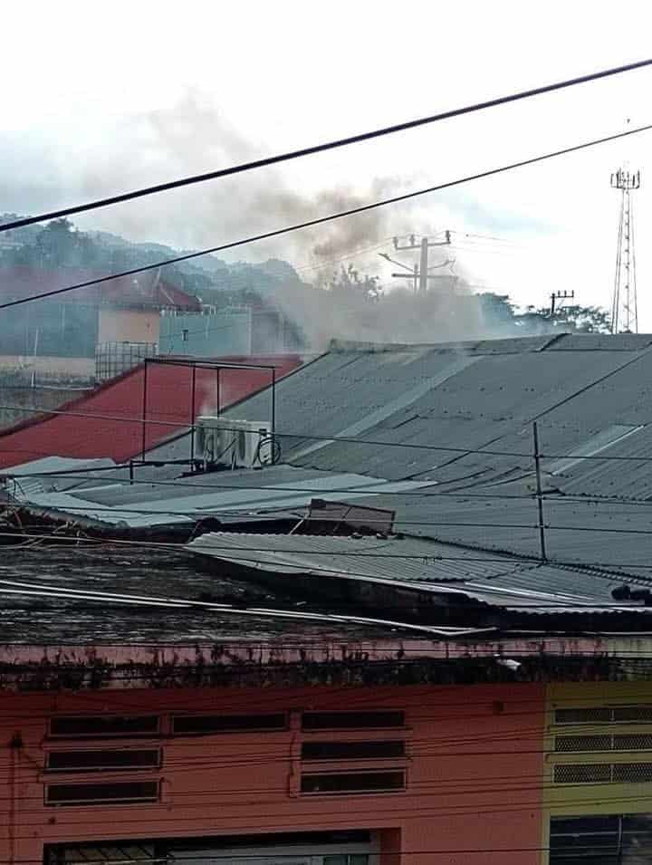 Columnas de humo se asomaron por la techumbre de este establecimiento, ubicado en la avenida Gregorio Méndez, frente al parque central y a un costado del Ayuntamiento.