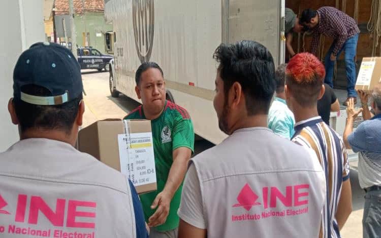 La vocal ejecutiva del INE en la entidad, Elizabeth Tapia Quiñones, informó que el material arribó bajo custodia de la Guardia Nacional y será resguardado en las bodegas de los consejos distritales.