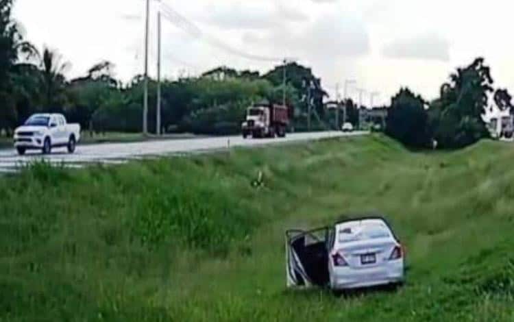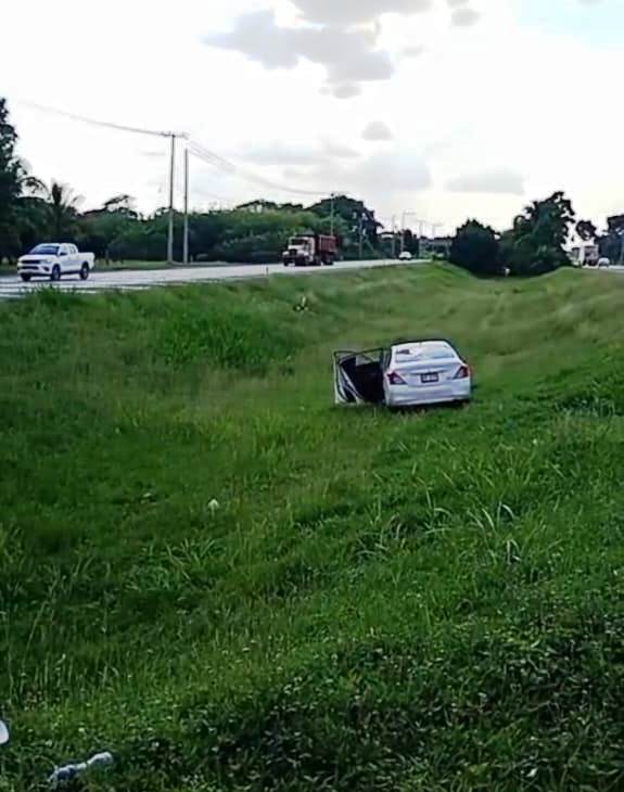 De acuerdo con versiones recabadas, la motociclista presuntamente intentó cruzar la carretera cuando fue embestida por el automóvil blanco. El conductor de la unidad trató de esquivarla, sin embargo, terminó impactándola y perdiendo el control, lo que ocasionó que el vehículo cayera en el camellón central.