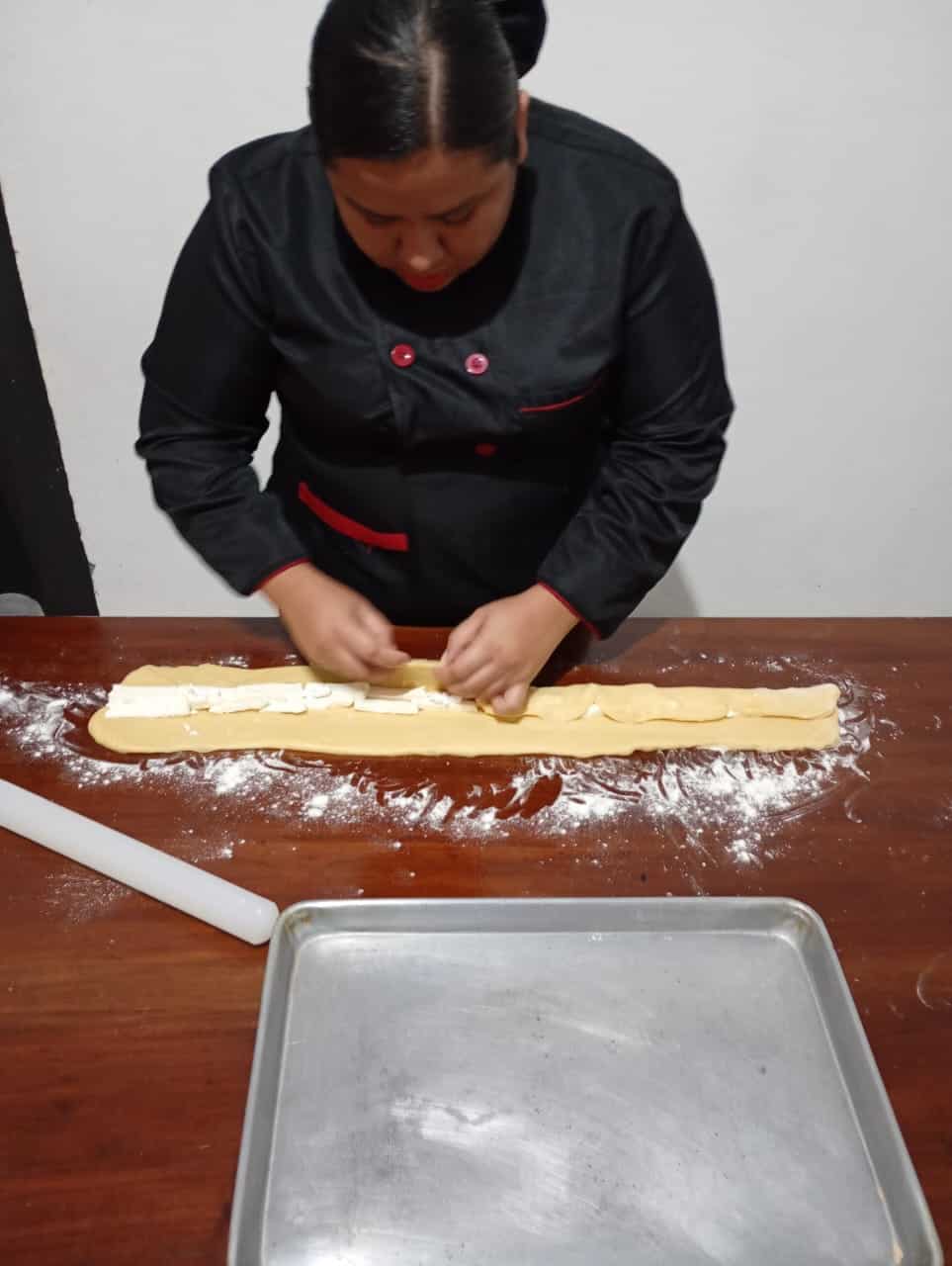 Un día antes, Jhoana prepara cuidadosamente los ingredientes secos: harina, azúcar y levadura. La mantequilla y la leche reposan con ralladura de naranja, detalle que para ella marca la diferencia y aporta ese toque especial que distingue a un buen pan.