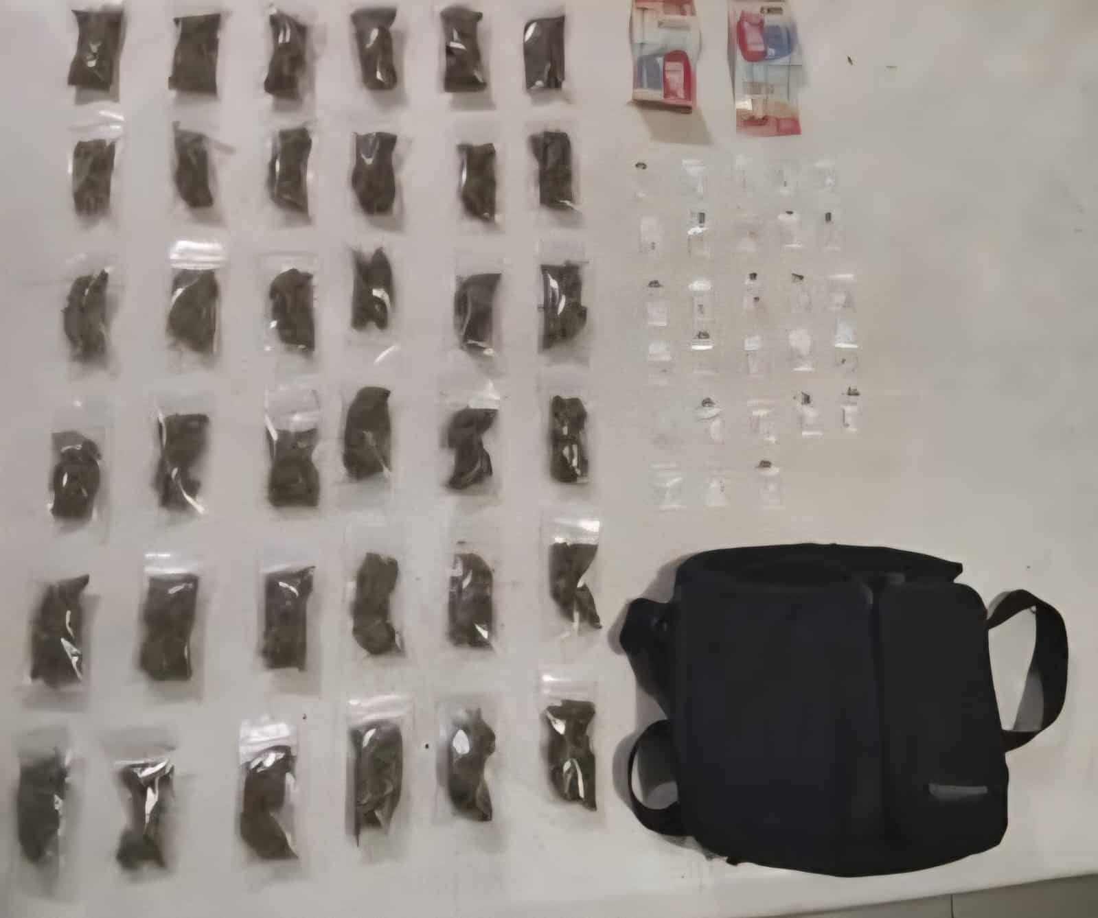 Durante la revisión, las autoridades le aseguraron varias bolsitas transparentes con hierba seca, con características similares a la marihuana, y bolsitas con una sustancia granulada, que aparentaba ser cristal. Además, se le incautó dinero en efectivo, una mariconera y una motocicleta marca Italika.