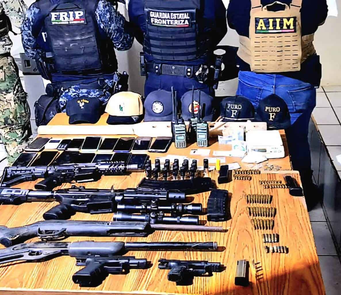 Fuerzas policiacas logran asegurar un arsenal de armas de fuego, además de teléfonos celulares, radios, droga y aseguraron diversas unidades motrices.