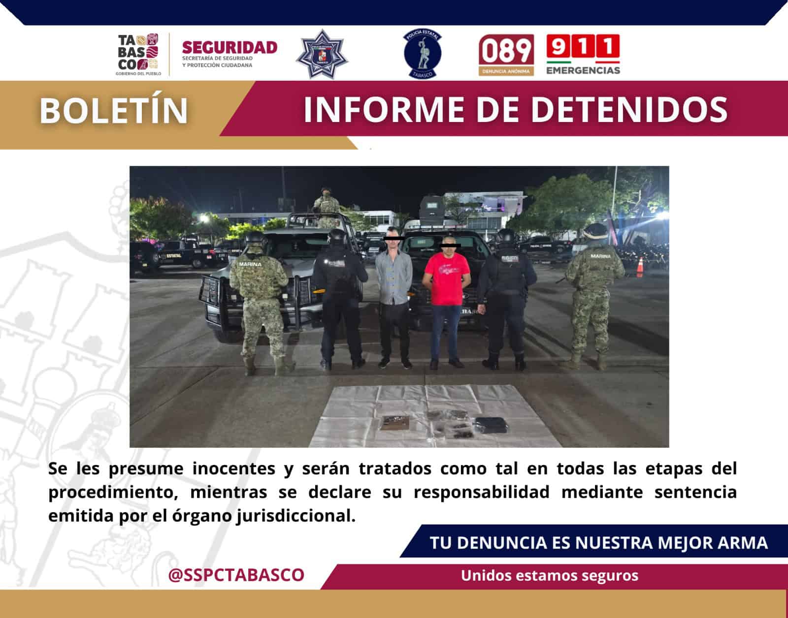 Como parte de la Estrategia Antiextorsión y del Plan de Contención del Delito desplegado por la Secretaría de Seguridad y Protección Ciudadana (SSPC) en coordinación con la Fuerza Interinstitucional de Reacción Táctica (FIRT) Olmeca, realizaron un operativo en las inmediaciones de la calle Amado Nervo del municipio de Centro, Tabasco, donde se obtuvo como resultado la detención de dos personas.