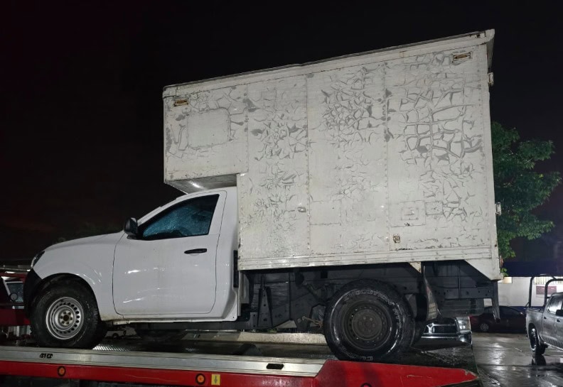 En el interior de la unidad marca Nissan de la línea NP300, fueron encontrados 56 paquetes que contenían la hierba seca.