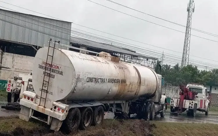 El conductor, al llegar frente a la comandancia municipal y observar una barricada formada con patrullas y elementos policiacos, perdió el control de la pesada unidad, saliéndose de la carretera y volcando en el camellón central.