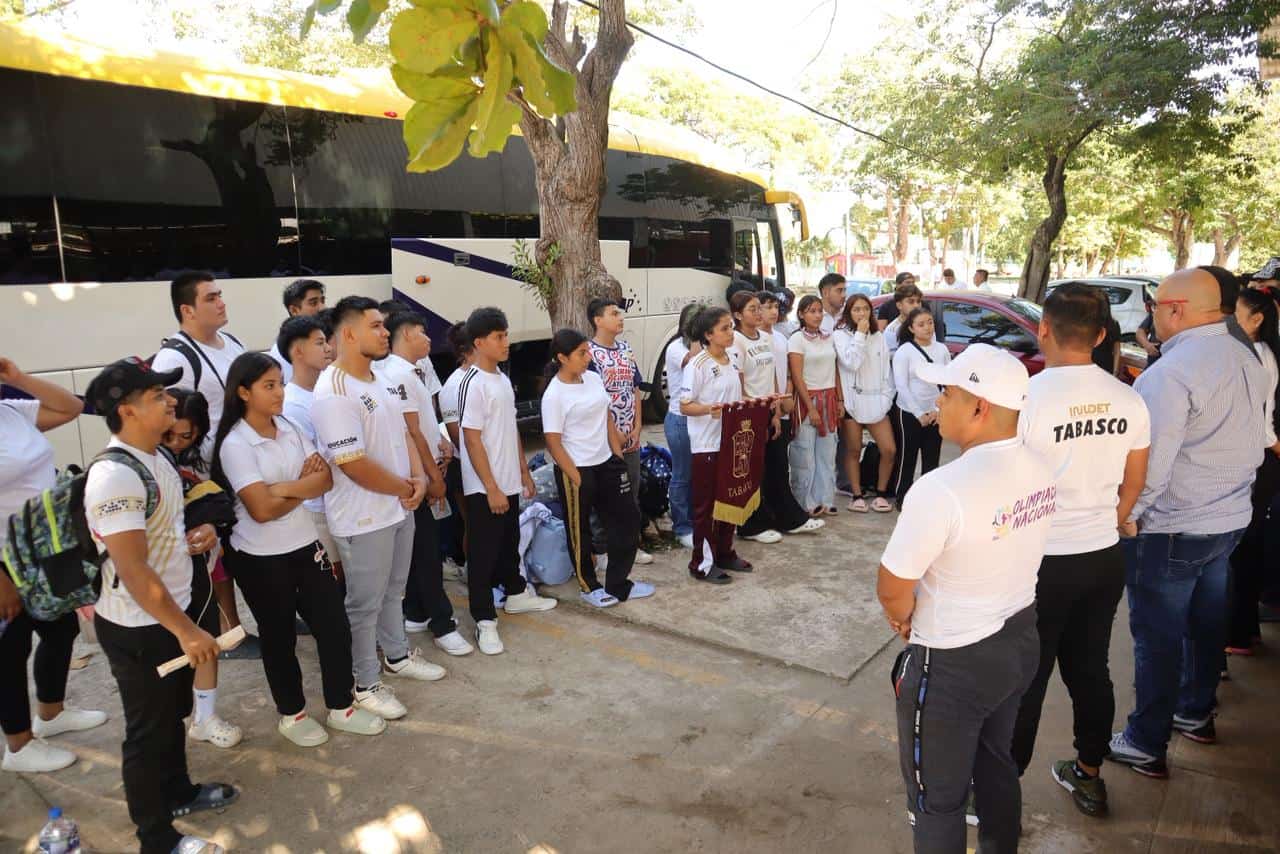 Previo a su viaje, el director del deporte del Instituto de la Juventud y el Deporte de Tabasco (INJUDET), José Muñoz, abanderó a los atletas, a quienes los impulsó a dar su máximo esfuerzo en la tarima.