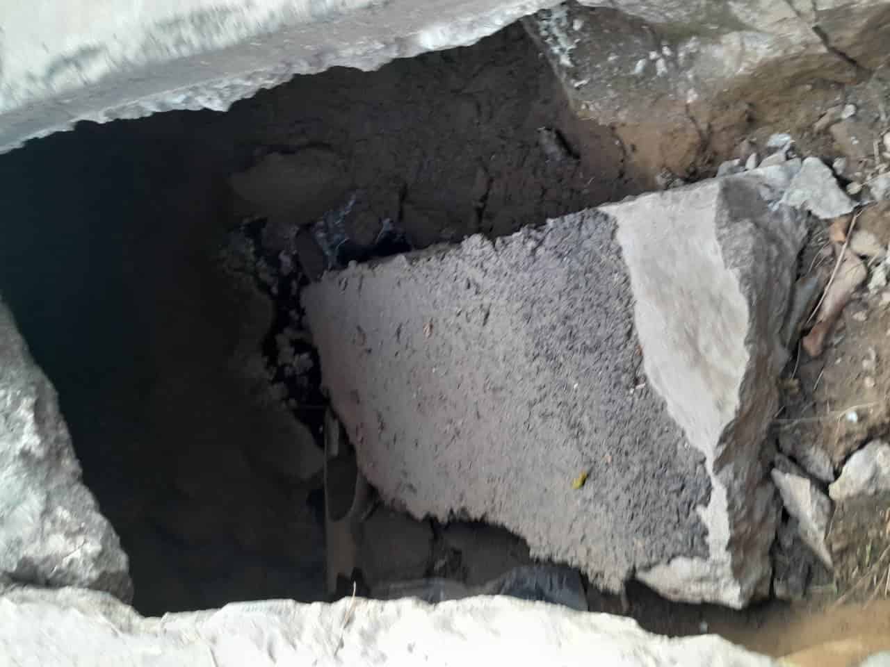 La situación, indicaron, es que en cualquier momento podría generarse un accidente, ya que no tiene señalamientos y el socavón o hundimiento está profundo, debido a los deslaves internos.