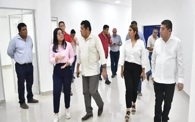 Junto a la presidenta municipal de Huimanguillo, Mari Luz Velázquez Jiménez, dijo que ya se tiene una caseta de vigilancia, área de comedor y cocina, dormitorios con sus respectivos sanitarios, y oficinas administrativas, así como un banco de armas.