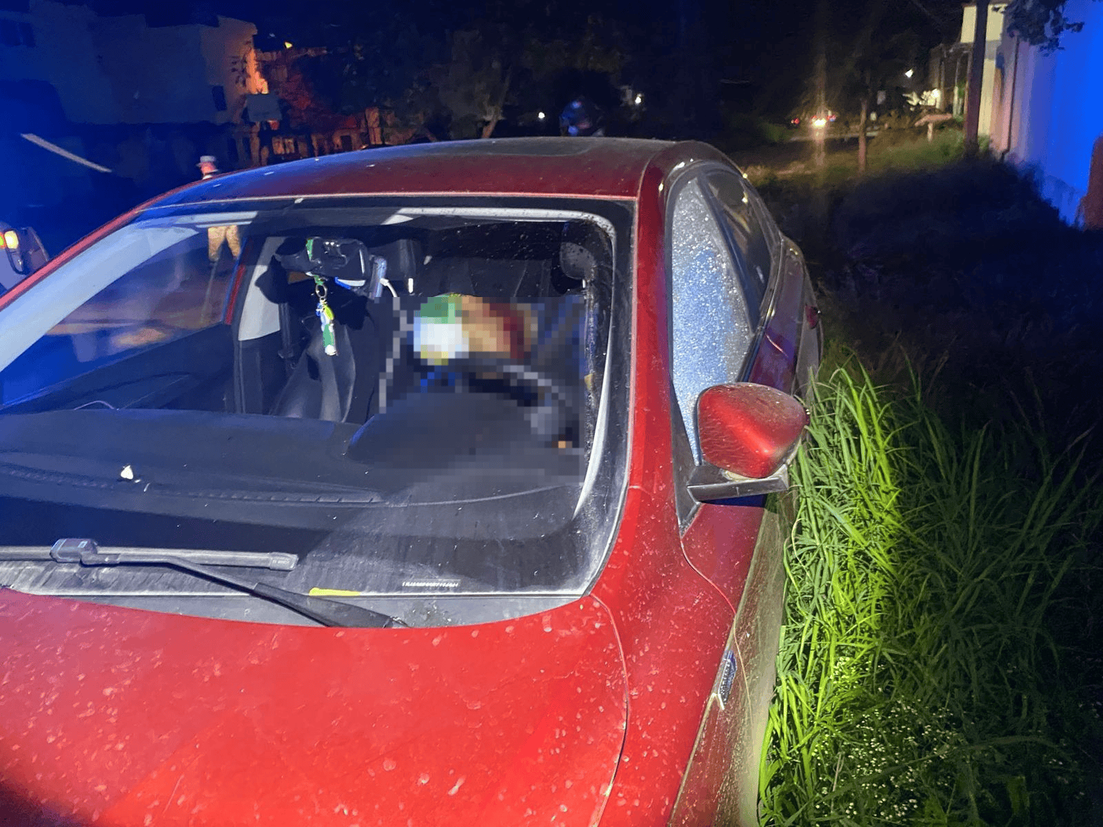 Los curiosos se percataron que sobre la banqueta se encontraba un vehículo color rojo mal estacionado con las luces encendidas, por lo que al acercarse se percataron que en su interior había un masculino sin vida.