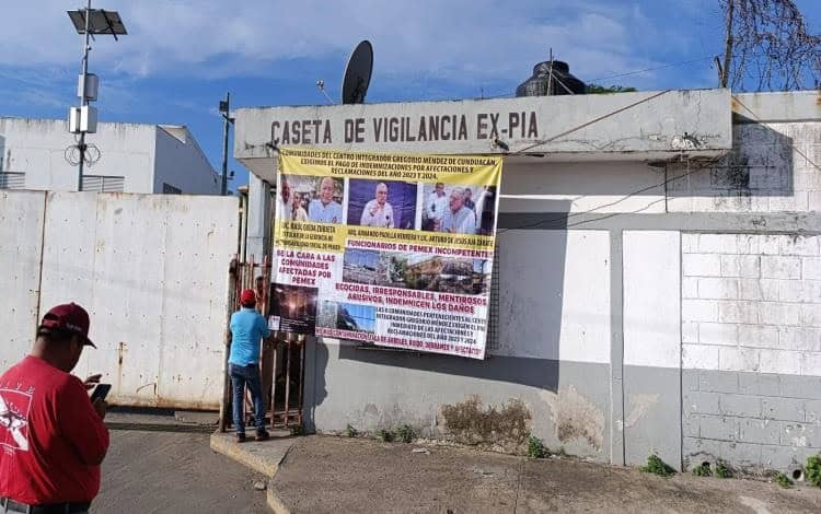 - Ahí, mediante una lona, exigieron la presencia de funcionarios al servicio de Pemex, a fin de que se les realice el pago de afectaciones causadas durante los años 2023 y 2024, en campos de cultivos y pastizales.